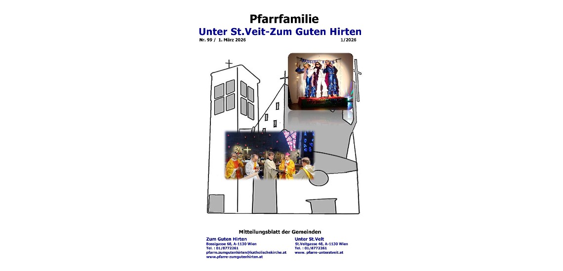 Unsere aktuelle Pfarrzeitung "Pfarrfamilie Unter St. Veit-Zum Guten Hirten" 1/2026 und ältere Ausgaben stehen hier zum Download bereit.