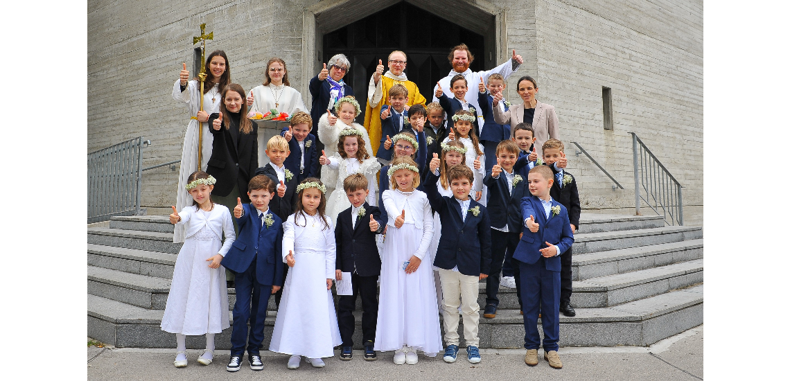 Am 13. Mai 2023 fand die Erstkommunion in der Pfarrkirche Unter St. Veit-Zum Guten Hirten statt. Dank der Vorbereitung von Elisabeth Buder, Brigitte Trapp, Susanne Maxian und Pastoralassistentin Katharina Schindelegger und der wunderschönen Gestaltung des Gottesdienstes durch Pfarrer Stefan Reuffurth durften wir ein tolles Fest mit den Erstkommunionkindern und ihren Familien feiern.