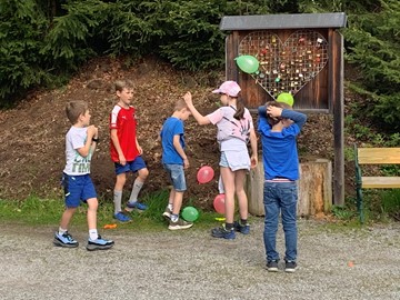 Am Samstag stand der Besuch des Wahrzeichens des Ortes, des riesigen, hölzernen PILGERKREUZES am Programm . Am Weg dorthin hatten die Kinder, in altersgerechten Gruppen aufgeteilt, verschiedene Rätsel zu lösen. Alle waren mit Begeisterung bei der Sache und freuten sich über wohlschmeckende Preise!