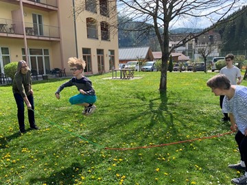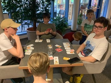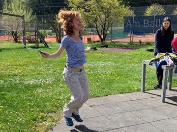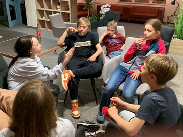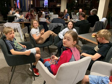 Nach einer von Edith gestalteten Andacht, in der Familien mit Schnüren untereinander und miteinander ein Netz knüpften neigte sich der Tag dem Ende zu. Groß und Mittel "chillten" noch die eine oder andere Stunde in der Lounge.