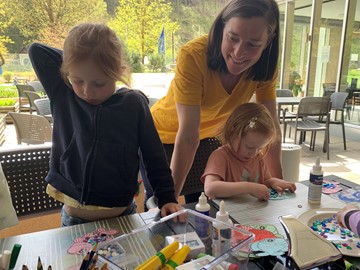 Neben all diesen gut vorbreiteten, gemeinsamen Aktivitäten, blieb genügend Zeit für Gespräche, Tratsch und Gedankenaustauch, sportliche Turniere am Fussballplatz oder bei Tischtennis und die jüngsten Mädchen hatten viel Freude, mit Kathi und Susanne Fische und Dekorationen für die Erstkommunuionsmesse zu gestalten.