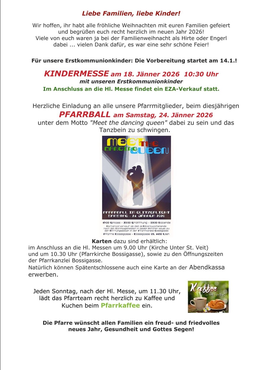 Nehmen Sie Kontakt mit unserem Pfarrer, der Pfarrkanzlei oder Mitgliedern des Pfarrgemeinderats auf.